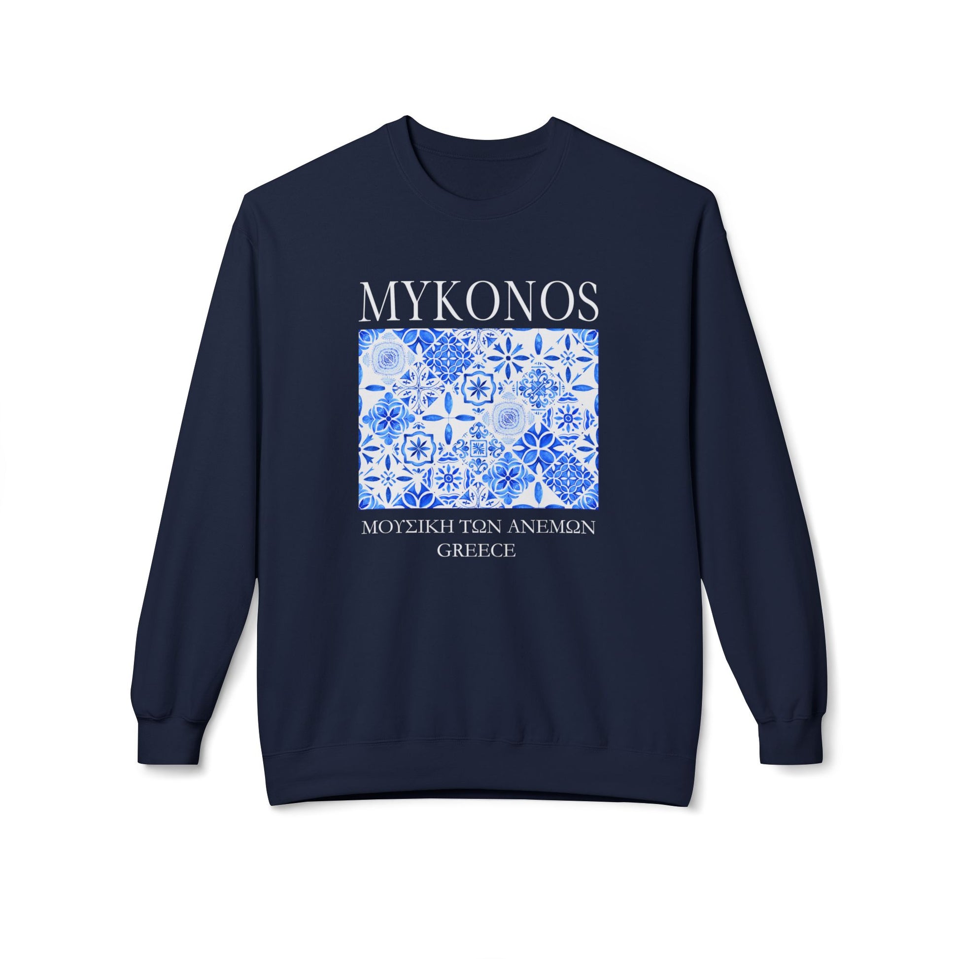 Mykonos Greece Vintage Mosaic Graphic Sweatshirt