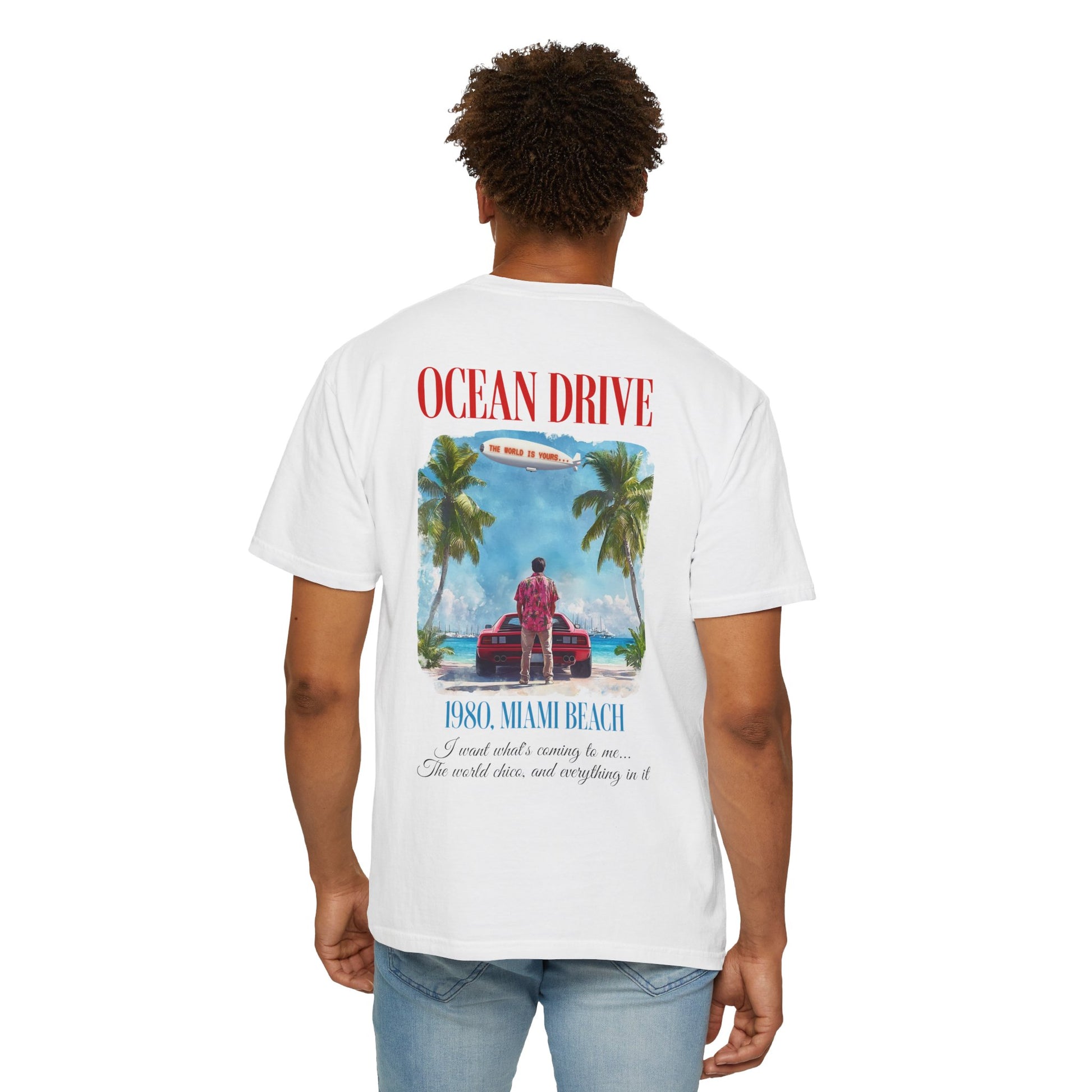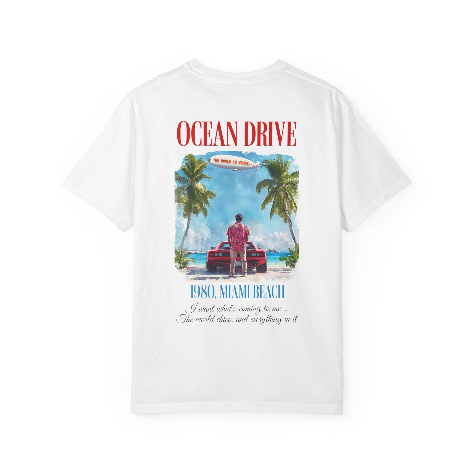 You’ve felt it—that fire inside you. That dream that’s loud, bold, and sunlit. This t-shirt is a spark from the 80s Miami dream, drenched in Ocean Drive’s ambition and Scarface attitude. It carries the mindset that built empires with one belief: “The world is yours.”