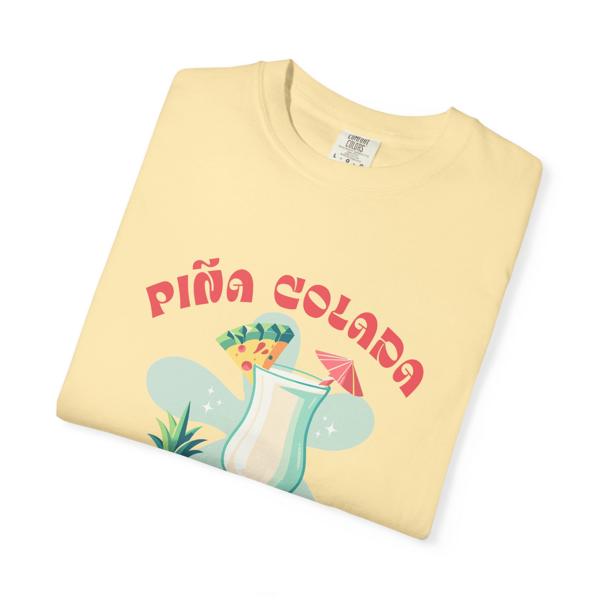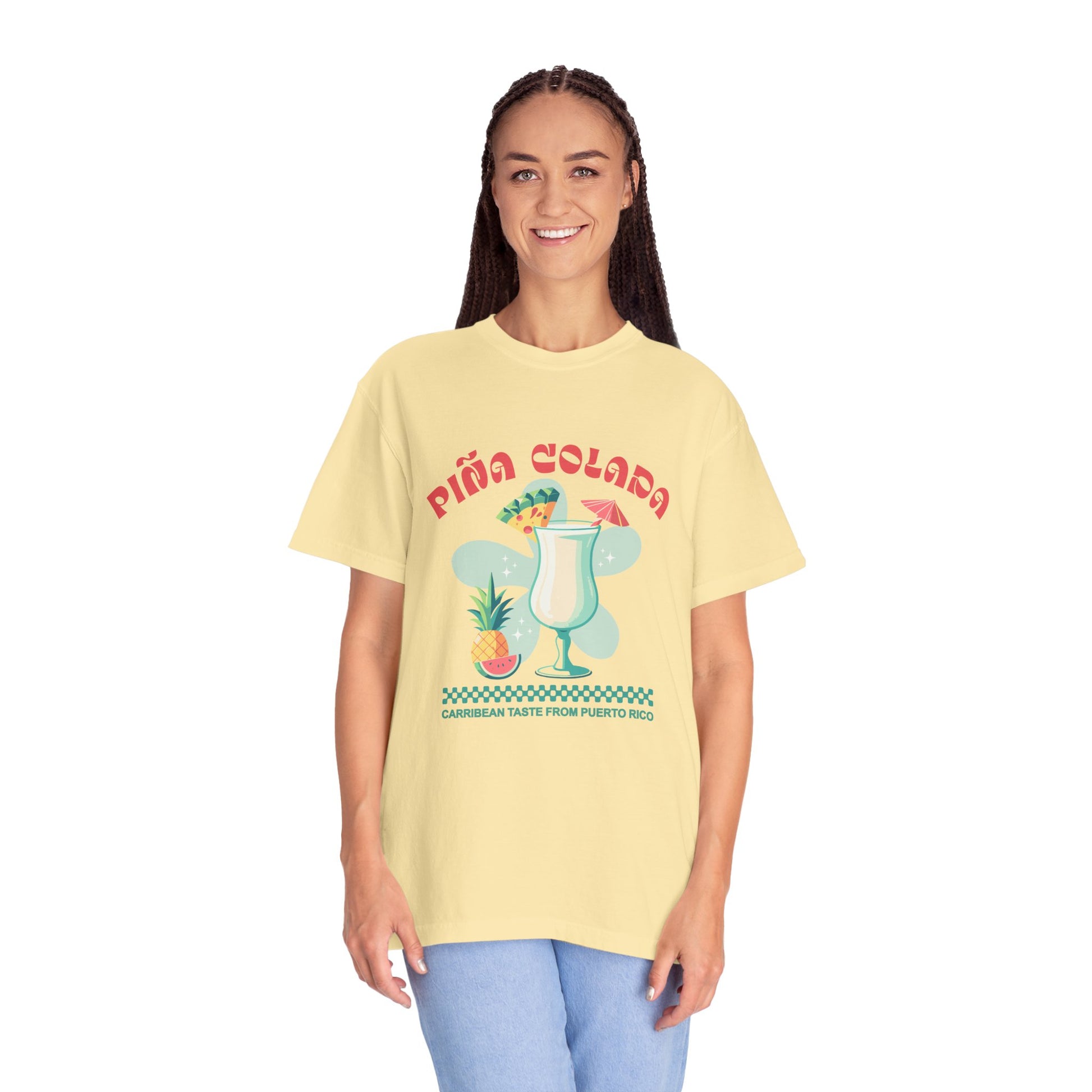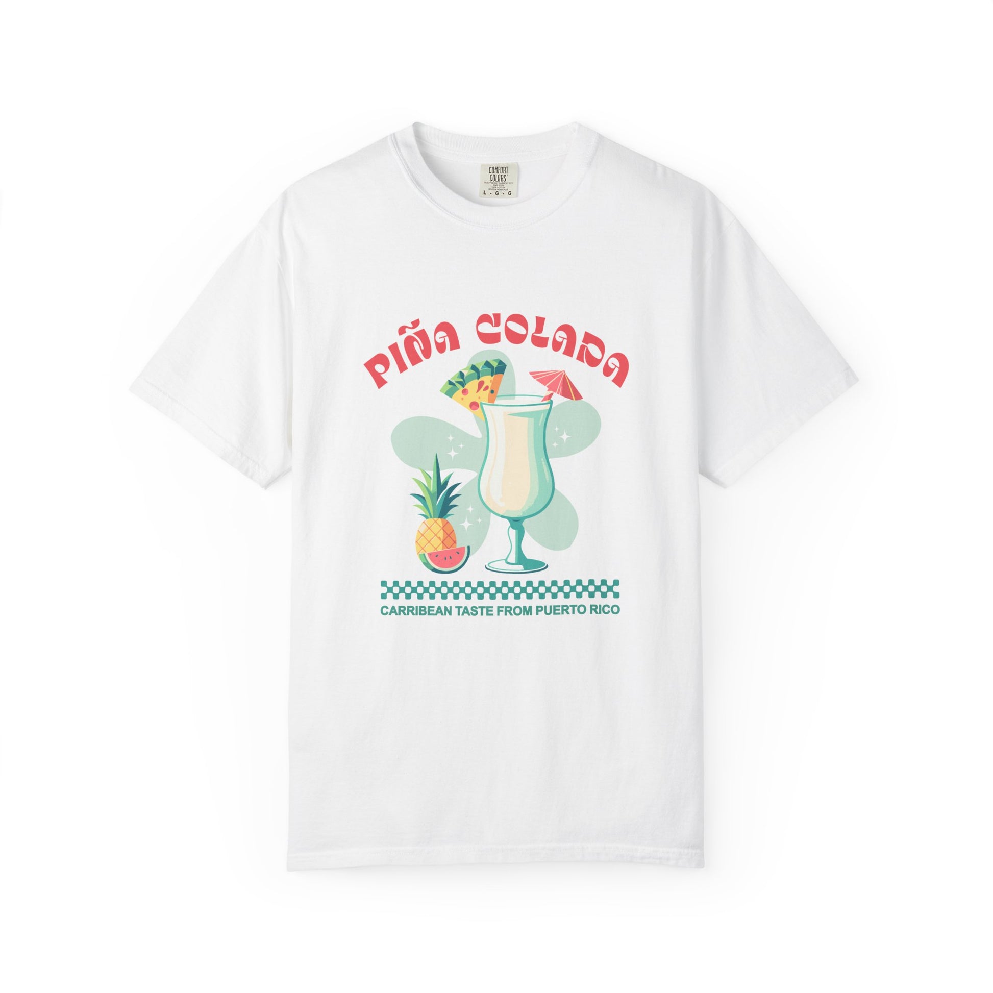 Exotic flavors, tropical bliss, and a taste of the Caribbean. Inspired by the refreshing cocktail from Puerto Rico, this t-shirt highlights the vibrant energy of Piña Colada.